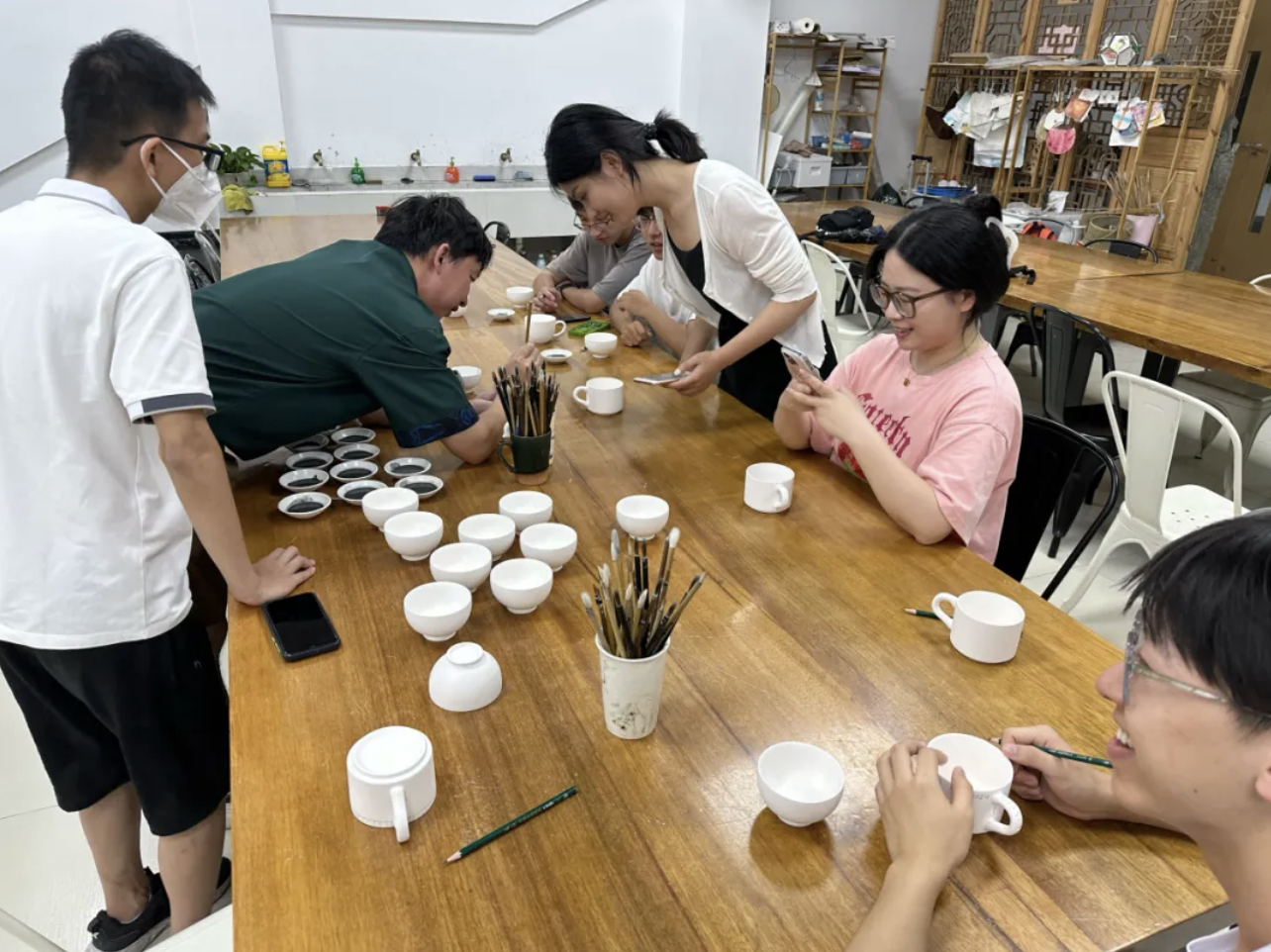 Classmates experience pottery class