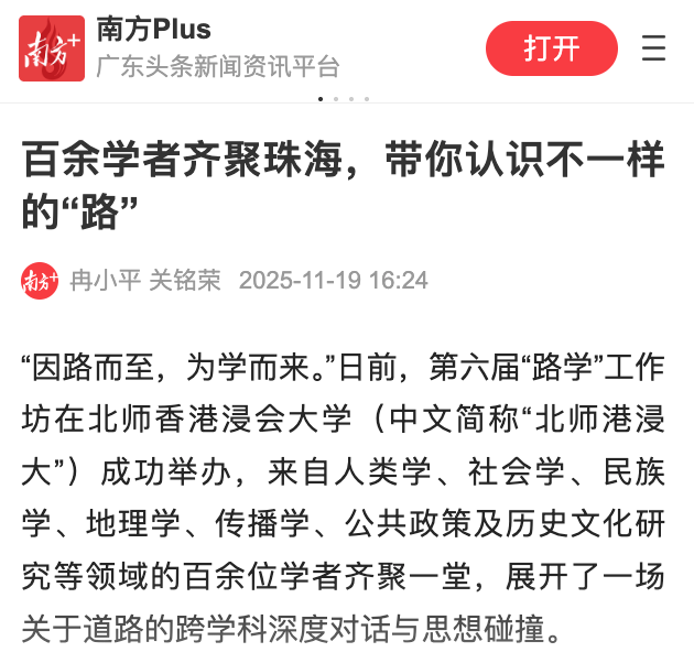 “因路而至,为学而来。”日前,第六届“路学”工作坊在北师香港浸会大学(中文简称“北师港浸大”)成功举办,来自人类学、社会学、民族学、地理学、传播学、公共政策及历史文化研究等领域的百余位学者齐聚一堂,展开了一场关于道路的跨学科深度对话与思想碰撞。